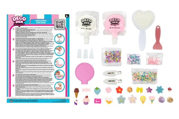 Zestaw zawiera innowacyjną masę dekoracyjną DecoDen oraz różnorodne akcesoria, które pozwalają na nieograniczone możliwości personalizacji.