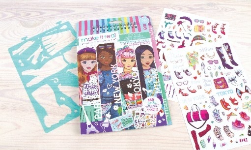 Zawiera wszystko, od szablonów i kolorowanek po pełny przewodnik projektowania i mnóstwo naklejek z akcesoriami/